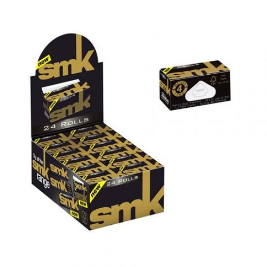 Foite pentru rulat tutun SMK ROLA. Caracteristici: natural gum, ultrathin paper, slow burning, 4m x 44mm