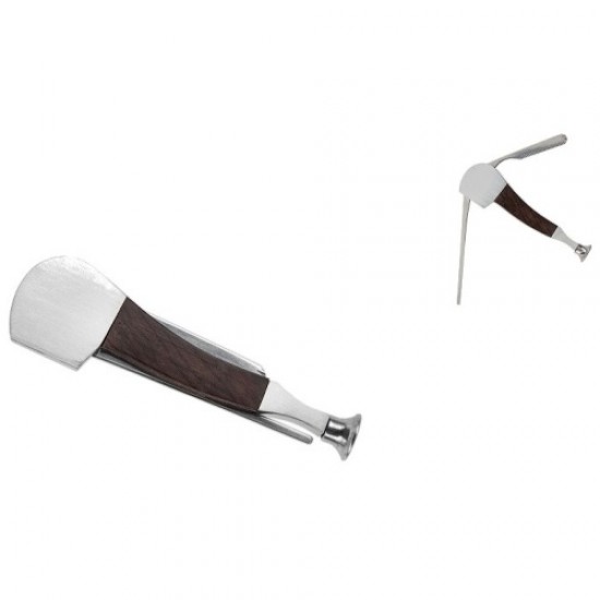 Futac pentru intretinerea pipei. Confectionat din otel inoxidabil imbracat in lemn. Doua unelte.