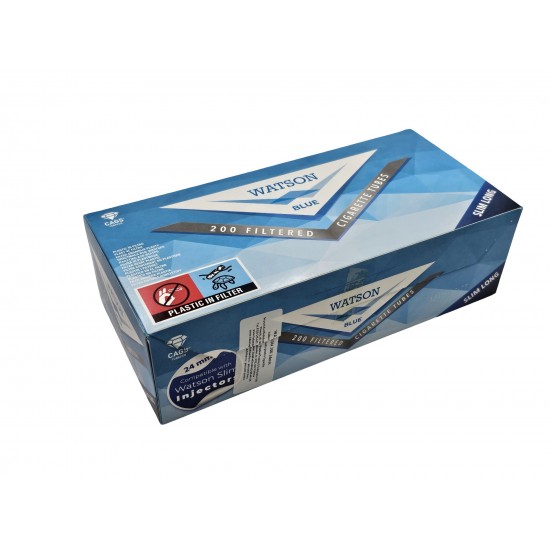 Watson Blue Slim 24mm/200 sunt tuburi pentru injectat tutun cu filtru lung, de o calitate excelenta si un design elegant.